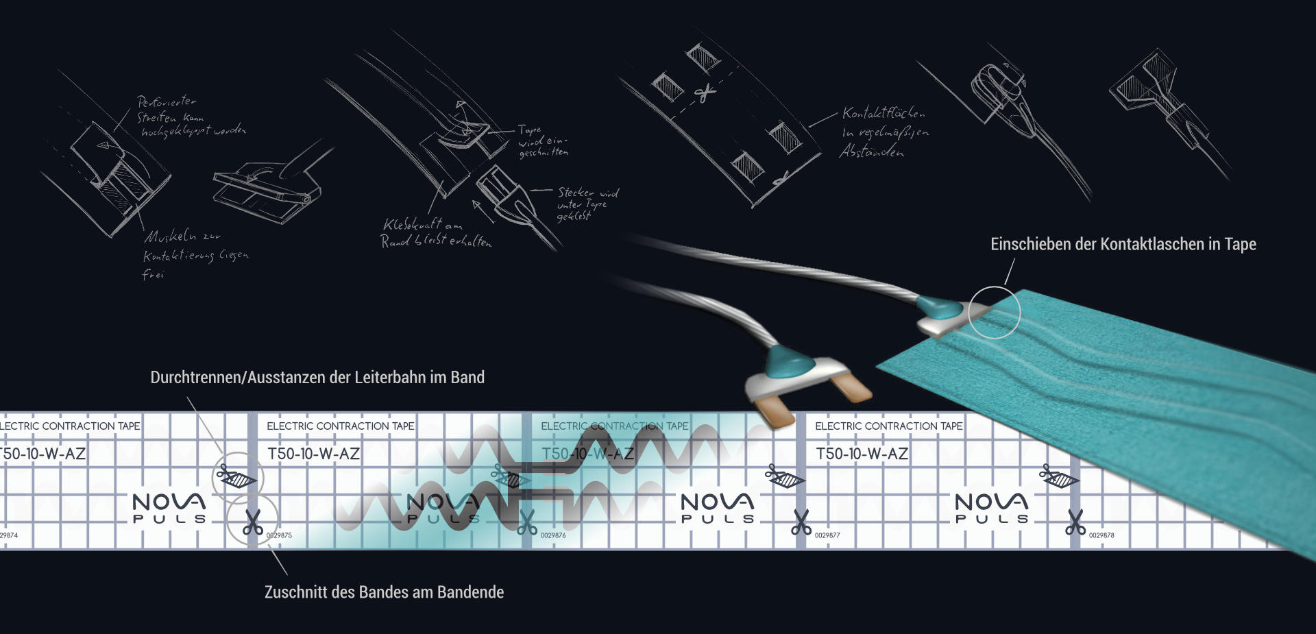 Um das Handling klassischer Kinesio-Tapes beizubehalten, sollten die ansteuerbaren Tapes auf einer Rolle verfügbar und möglichst beliebig zuschneidbar sein.