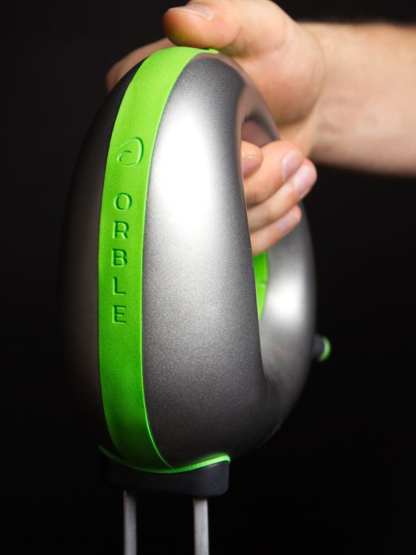 Aus der Idee, die Gehäuseschalen mit einem Elastomerprofil fugenlos abzudichten, entwickelten wir ein zentrales Feature und zugleich hervorstechendes Element des formalen Aufbaus. Aufgrund der Position des Dichtungselementes machte es für uns Sinn, darin Bedienelemente, Stromanschluss und Branding zu integrieren.