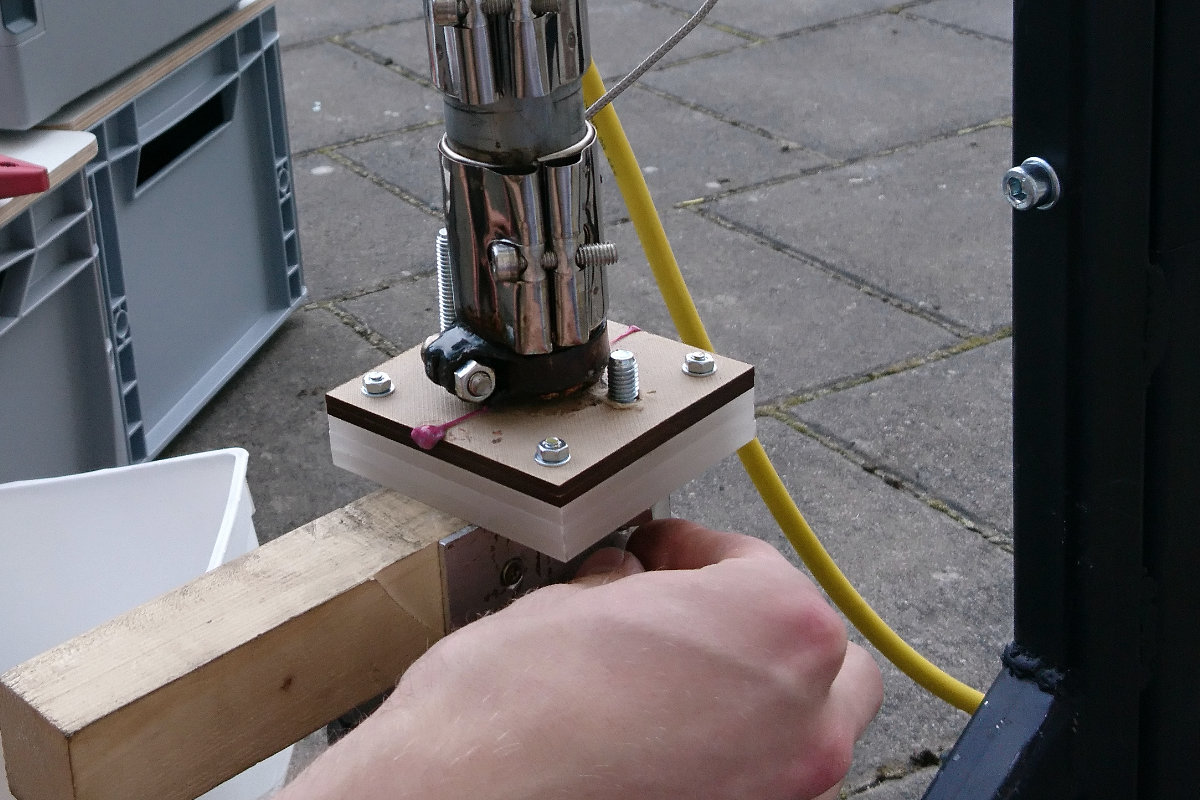 Mit etwas Gefühl wurde dann die bunte, aufgeschmolzene Plaste in die Form gepresst. Das Ergebnis konnte sich trotz des spartanischen Aufbaus - bei dem ein Wagenheber eine nicht ganz unbedeutende Rolle spielte - sehen lassen!