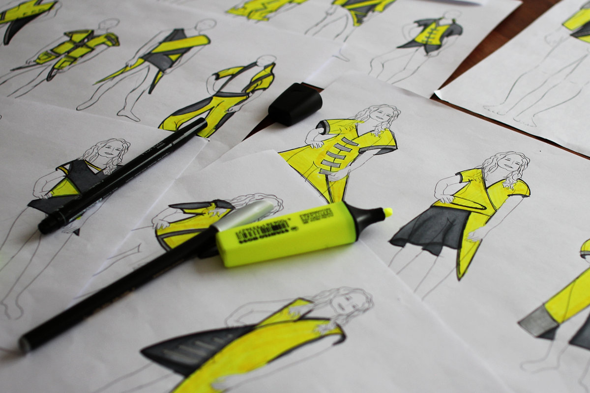Daraufhin entwickelten wir erste Entwürfe auf Figurinen-Vorlagen zur Interpretation des Begriffes.