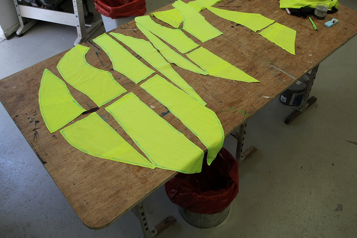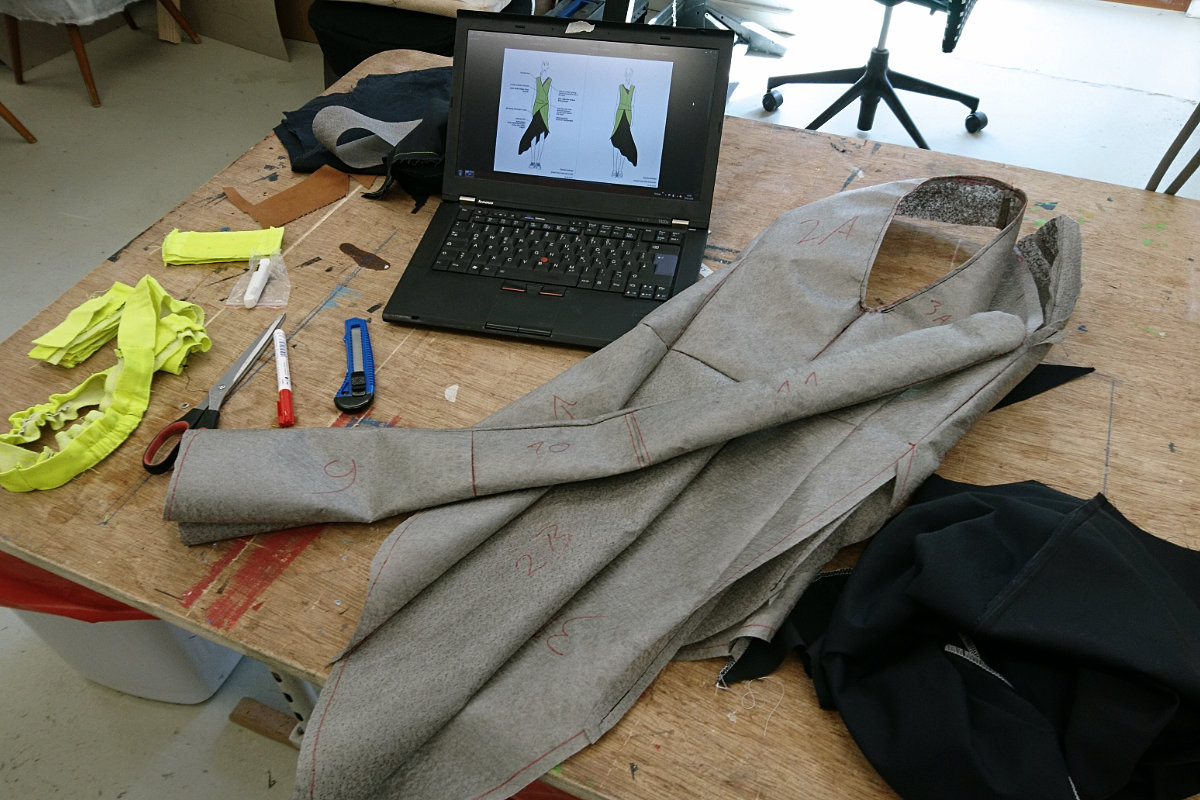 Neben den aufgetrennten Neon-Stoffstücken stehen auch mehrere neue Stoffe des Modelabels aus New York zur Verfügung, die eingeflogen wurden.