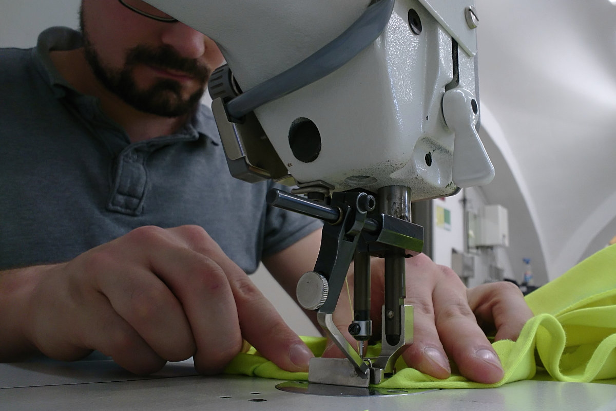 Die Näharbeiten können teilweise von einem geflüchteten Schneidermeister aus Syrien übernommen werden, der bei den Coburger Diensten arbeitet.