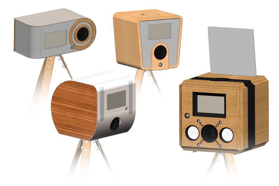 Before the final form was defined, i generated some designs in CAD, including the packaging of the camera and other parts. Out of these designs, new ideas were generated. Some of them, like the acryl glass front or the bellow look, were used in the final model.