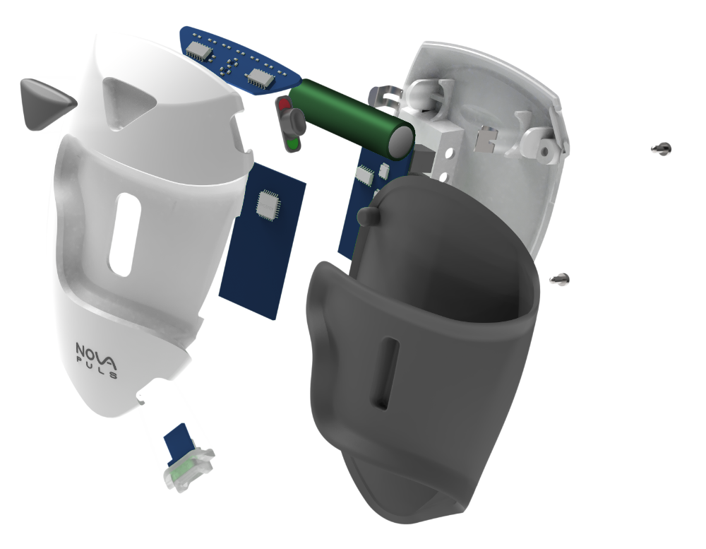 Das neutrale Gerät kann durch leicht auswechselbare Armbänder individualisiert werden. Dadurch soll ein persönlicher Bezug zu einem ausgeliehenem Therapiegerät geschaffen und Patient:innen dazu motiviert werden, es gerne zu nutzen - auch in der Öffentlichkeit.
