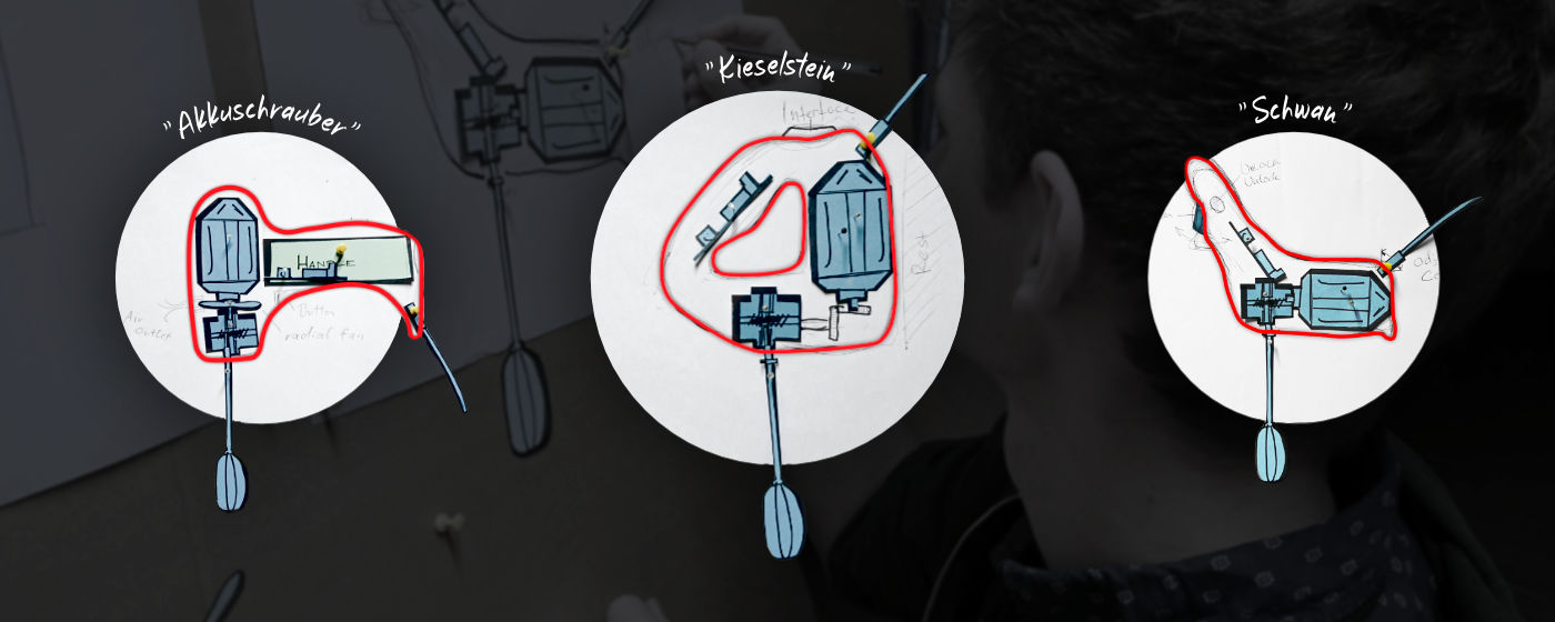 durch. Darauf folgte eine Ideenfindungs- und Entwurfsphase. Ein in jeder Küche vorfindbares Gerät soll neugestaltet und verbessert werden - in seiner Funktionsweise, seiner Handhabung und seinem Aussehen. Aus der vorangegangenen Analysephase gesammelten Informationen wurden dabei ebenso mit einbezogen, wie herstellungsrelevante Aspekte.