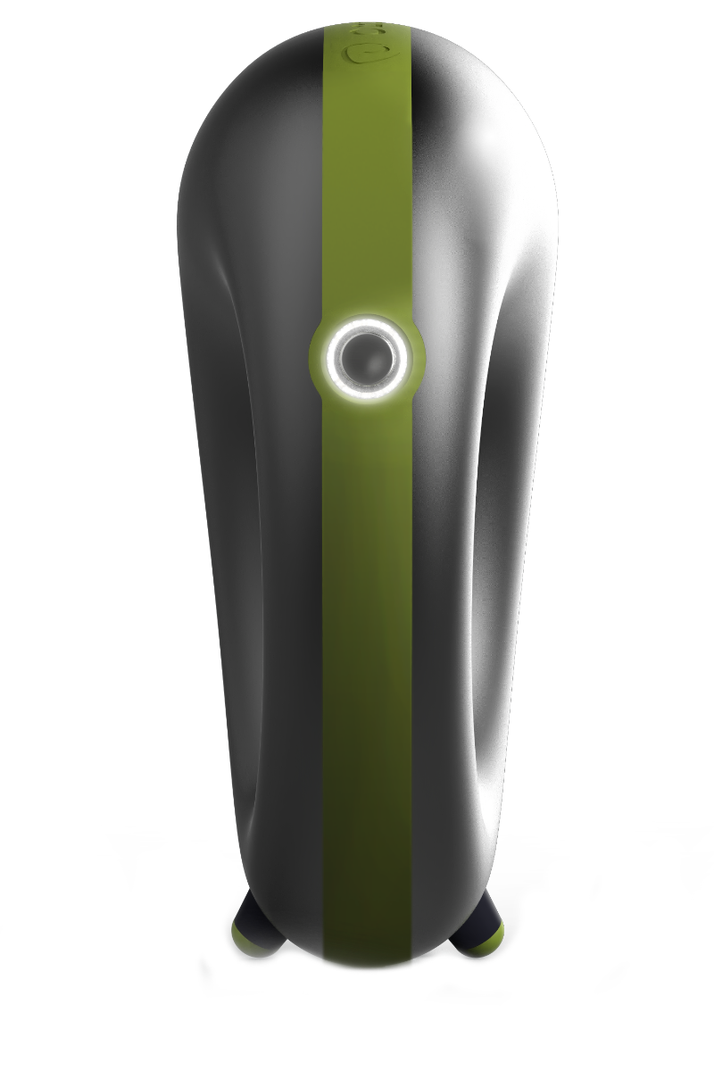 Aus der Idee, die Gehäuseschalen mit einem Elastomerprofil fugenlos abzudichten, entwickelten wir ein zentrales Feature und zugleich hervorstechendes Element des formalen Aufbaus. Aufgrund der Position des Dichtungselementes machte es für uns Sinn, darin Bedienelemente, Stromanschluss und Branding zu integrieren.
