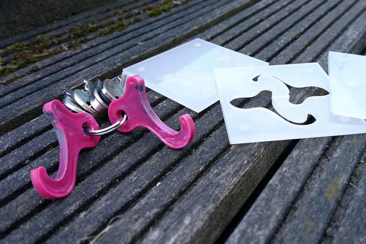 Mein Workshop-Ergebnis war eine Smartphone-Stütze für den Schlüsselbund. Sie besteht aus zwei identischen Teilen, welche in einer gemeinsamen Kavität gegossen wurden.